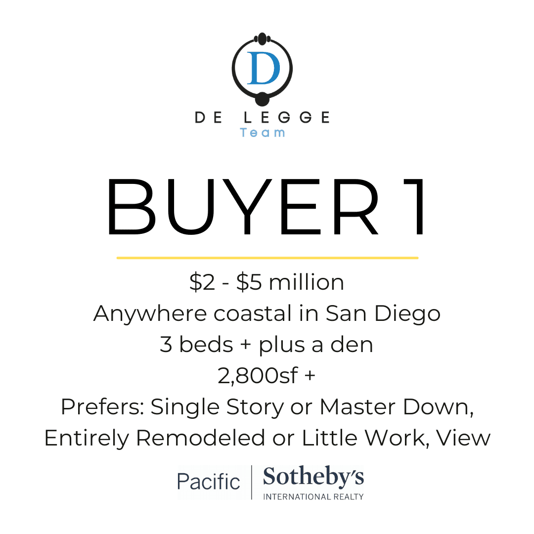 Help us make a match for one of our terrific buyer clients! With a low supply of active listings, we have a host of wonderful buyers ready to act on the right opportunities. Let us know if you own a property that might be a match, or have a neighbor or colleague who does. We will take care of all the details and insure a smooth process for everyone. Thank you for taking a moment to scan our list, that's constantly being updated.