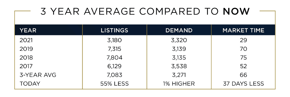 Interesting Fact: Last year, demand was at 4,005 and climbing, 21% more than today, with the arrival of a very late Spring Market due to COVID.