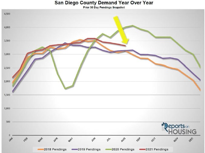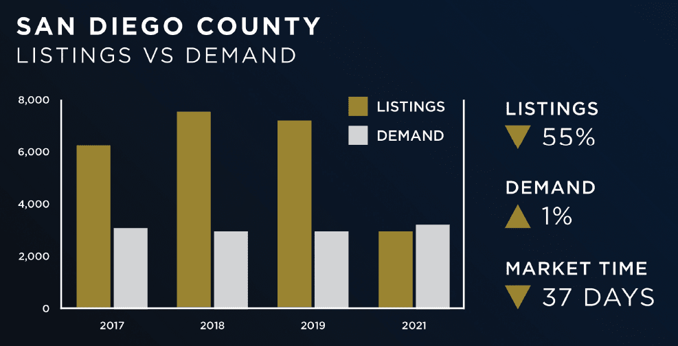 FOR SALE signs in San Diego County, 7% less than the 3-year average. While it may not seem like much of a difference, it is still adding to the scarcity of available homes and exasperating the inventory crisis.