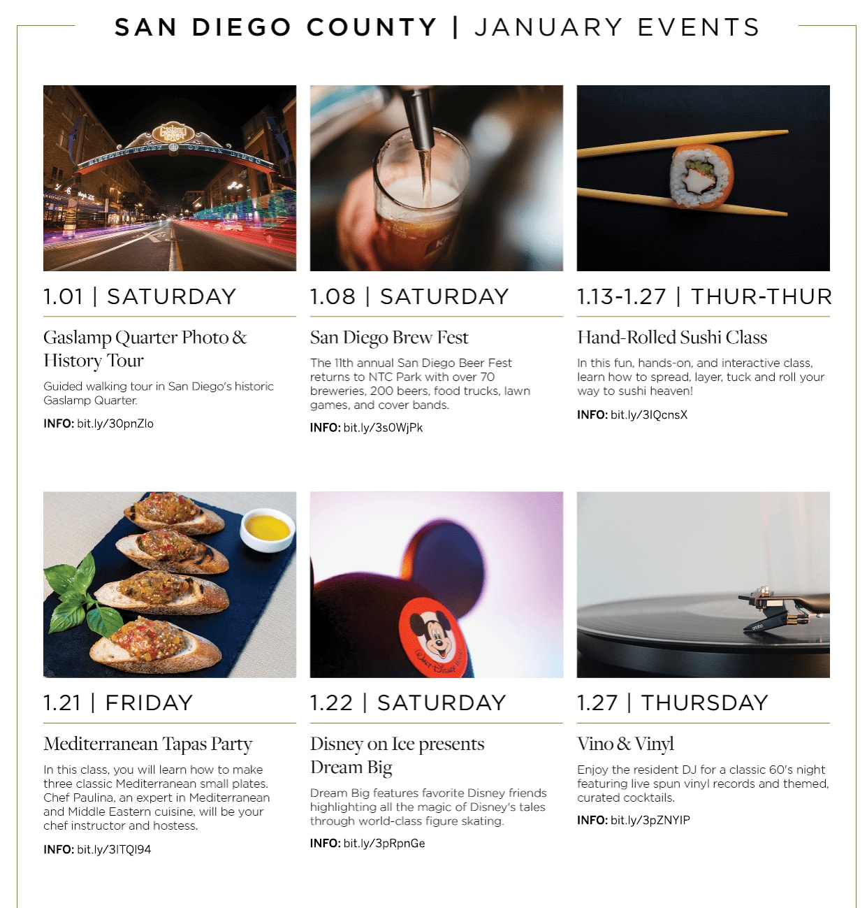 Whether you are visiting San Diego or a local, here's what's happening in San Diego this January. From Wine Tours to Cooking Classes, we've got you covered: